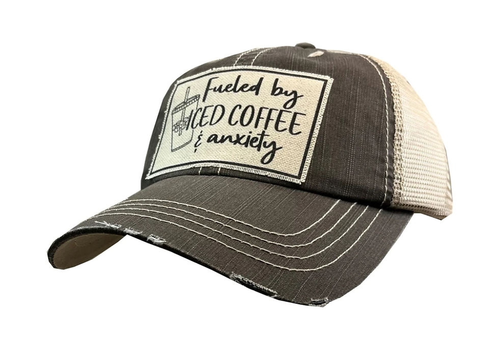 Fueled By Iced Coffee & Anxiety Distressed Trucker Cap