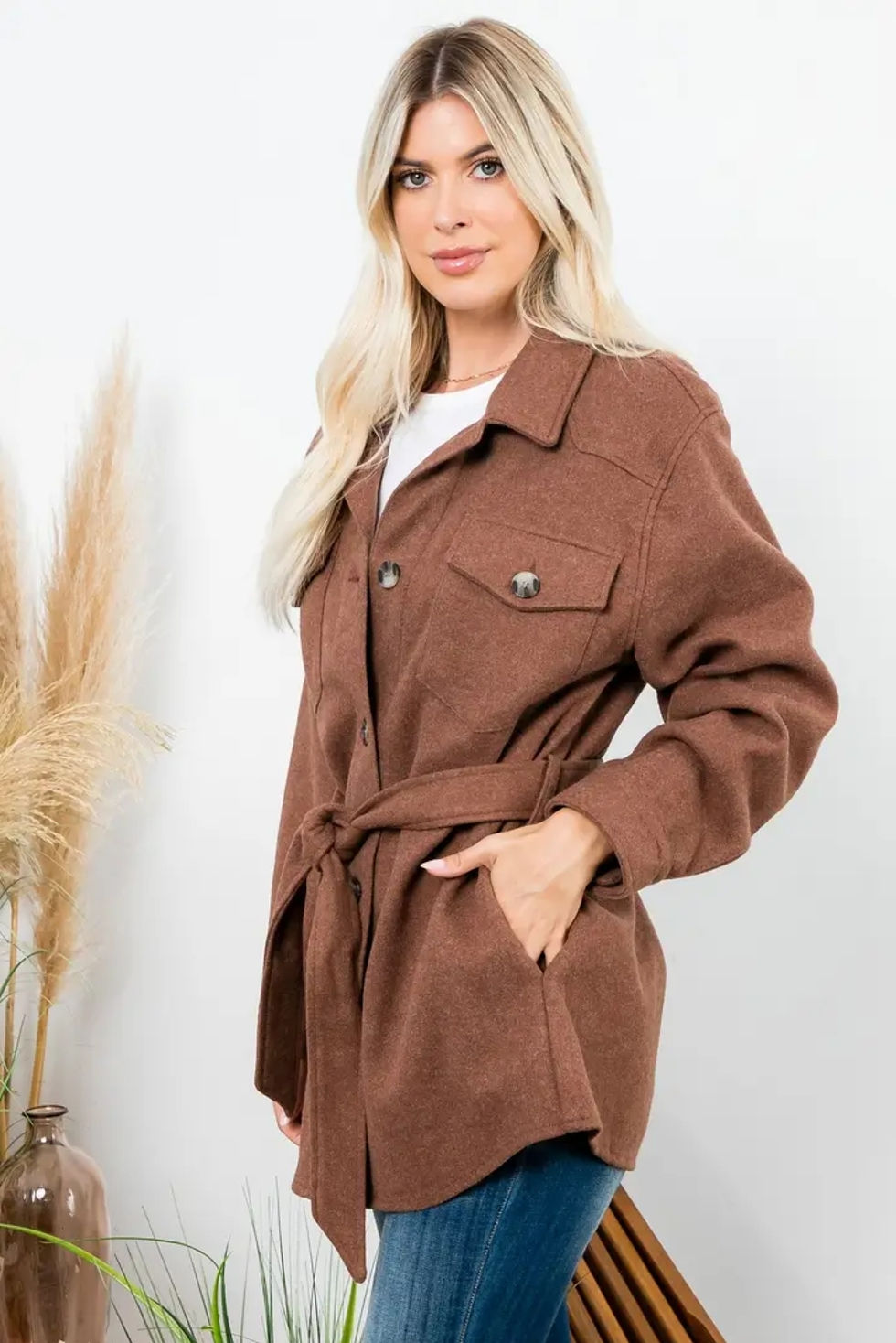 Wool Like Belted Shacket